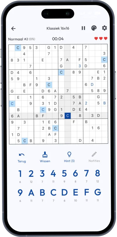 Killer Sudoku voegt extra logische lagen toe door somkooien en regels voor dubbele getallen. Grote 16x16 Sudoku roosters vereisen meer planning en belonen geavanceerde technieken zoals scannen, kandidaat-eliminatie en patroonspel. Deze modi zijn zelden samen beschikbaar in één app, vooral met eindeloze generatie en toegankelijkheidsfuncties.
